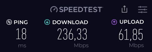 MeiG : Ping 21ms, 178,23 Mbit Download, 68,89 Mbit Upload